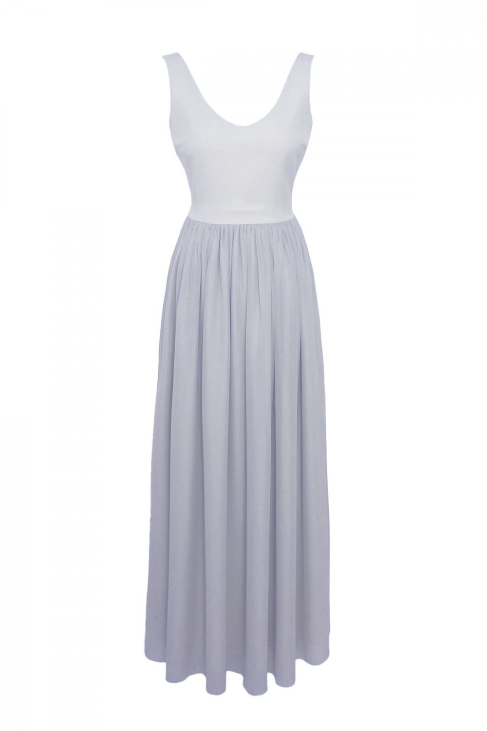 Długa sukienka na szerszych ramiączkach z szyfonowym dołem.