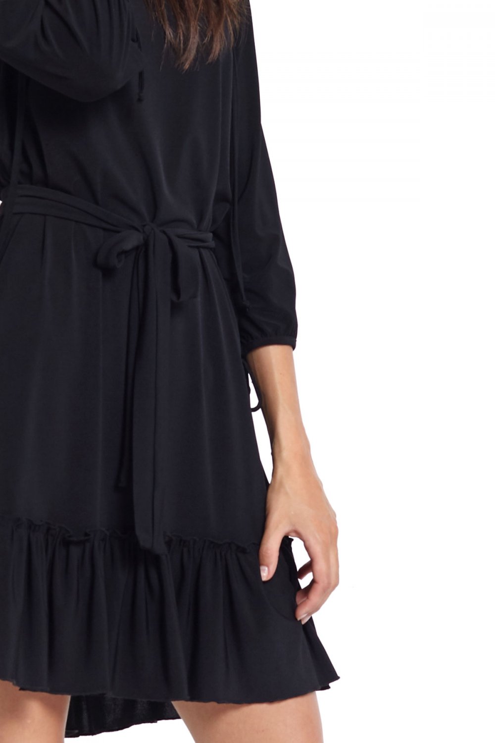 Dzięki dołączonemu do sukienki paskowi, możesz podkreślić swoją talię. Rękawy ¾, zakończone są marszczeniem i sznureczkami – a to wydłuża całą sylwetkę.