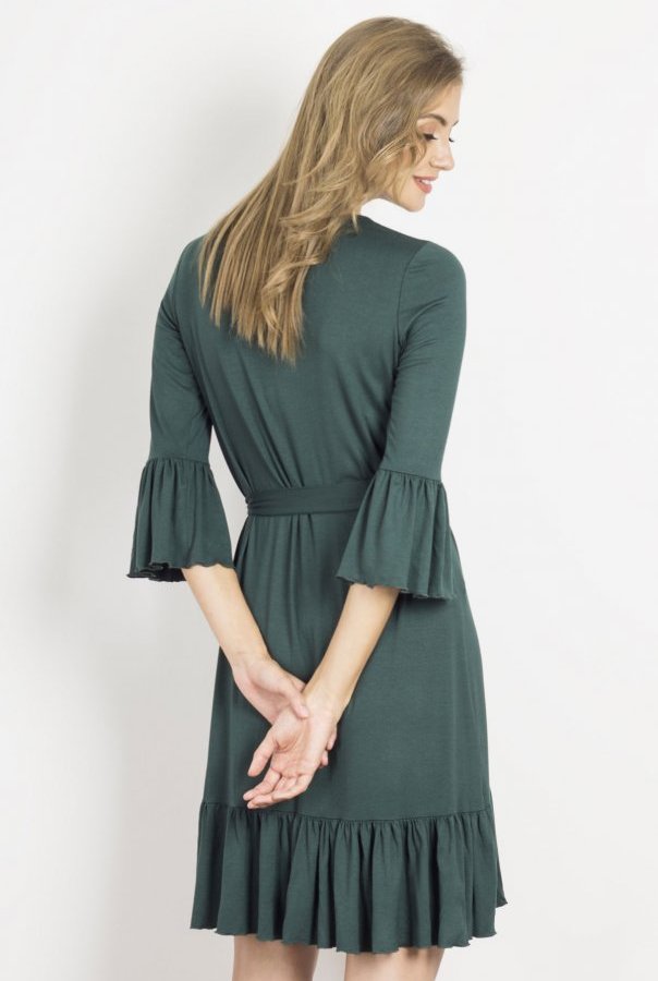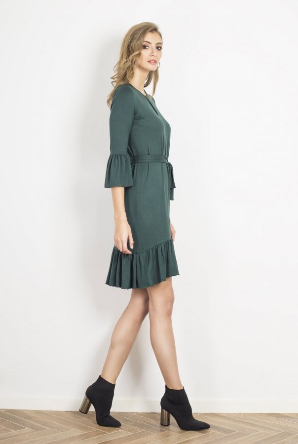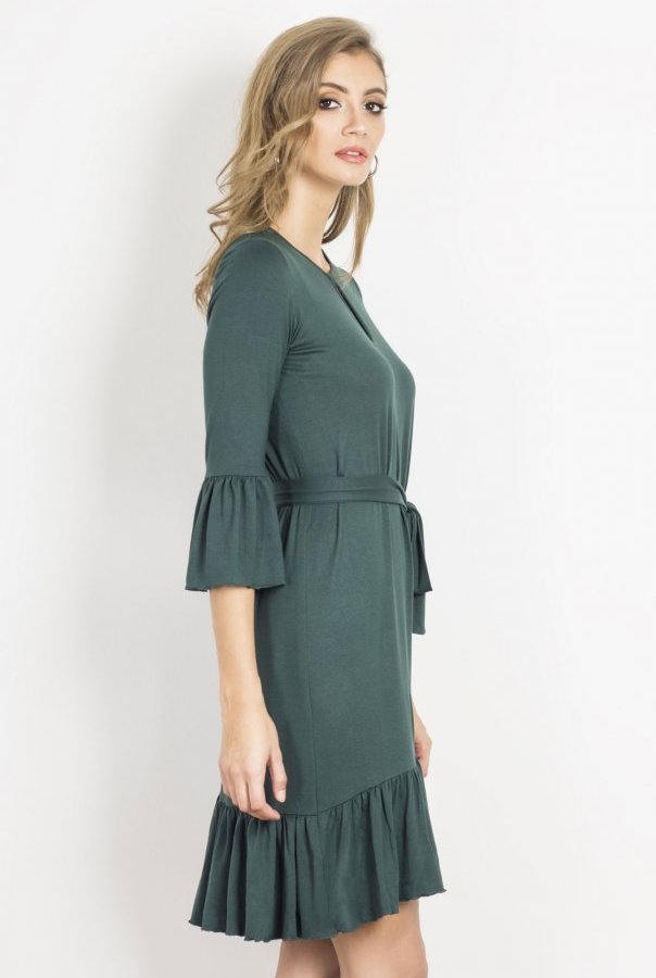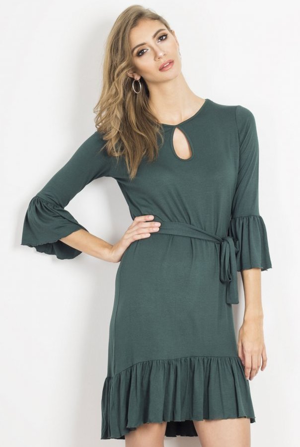 – Sukienka o luźnym kroju z falbankami przy rękawach oraz na dole, wykonana z przyjemnej w dotyku wiskozy